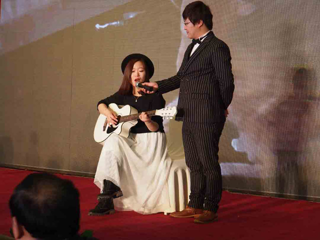 尊龙凯时营销中心2015年度总结表彰会后,2016年迎新春尊龙凯时家宴拉开序幕,员工们自排自演了很多精彩节目为大家助兴,舞蹈串烧、吉他弹唱、舞台剧,丰富多彩的节目使家宴的欢乐气氛愈发浓烈,现场掌声、欢笑声不断。当台上响起《父亲的草原,母亲的河》这首熟悉的旋律时,多才多艺的董事长刘景萍博士也走上舞台,与台上表演者一道,为大家演唱了这首经典歌曲,她高昂的歌声将现场气氛推向了高潮。一曲唱罢,董事长借歌词意境,嘱咐大家“要关心关爱父母,常回家看看”,这句充满关爱的肺腑之言让在场的所有尊龙凯时人都感到了浓浓的暖意,现场再一度响起了热烈的掌声。董事长刘景萍博士与大家亲切互动