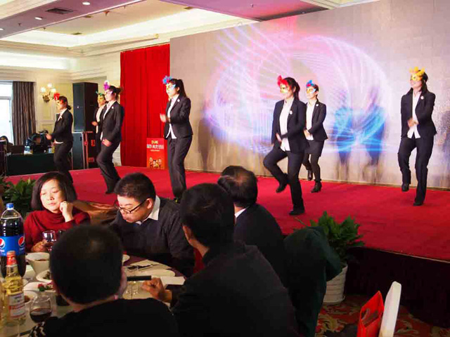 2015年度总结表彰大会圆满结束后,2016年迎新春晚会在喜庆开场舞《张灯结彩闹新春》中开始,欢快的舞步在道具红灯笼的掩映下散发出浓浓的新年气息,将浓浓的祝福洒满大厅的每一个角落。本次联欢会节目精彩纷呈,所有的节目都是各个部门利用工作之余自编自导自演,欢快喜庆、激情澎湃的歌曲;唯美、活泼、热情如火的舞蹈;诙谐幽默的喜剧(小品);振奋人心的团队合唱等等。这些都充分展示了尊龙凯时员工的多才多艺,以及快乐工作、健康生活的文化理念。《张灯结彩闹新春》