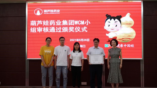 集团董事长刘景萍、集团副总经理李君玲、海南生产基地生产副总李培湖为通过审核的项目小组颁发证书